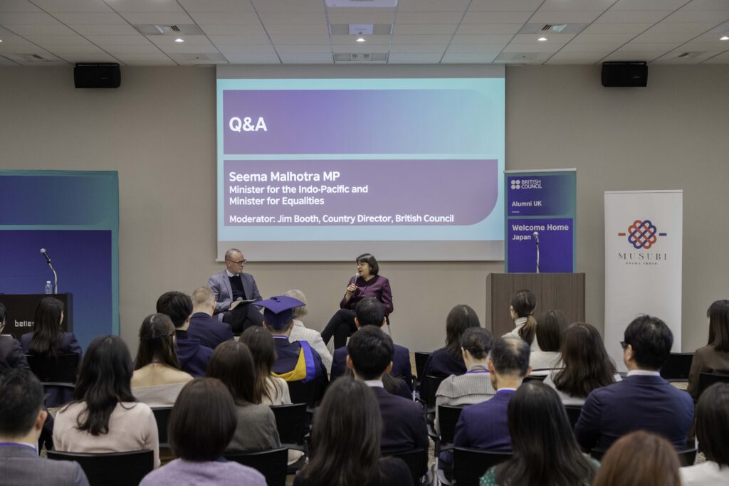 2025年12月14日、ブリティッシュ・カウンシルはベルサール六本木グランドコンファレンスセンターにて、日本初となる 「おかえりなさい!帰国歓迎会」 を開催しました。本イベントは、2016年以降に英国の大学・大学院の卒業生を対象に、再びつながり、経験を共有し、新たな可能性を探る場を提供しました。駐日英国大使や英国のインド太平洋担当・平等担当大臣であるシーマ・マルホトラ下院議員によるスピーチも行われ、イギリスの教育がもたらす価値と、それを支えるグローバルネットワークの重要性が強調されました。